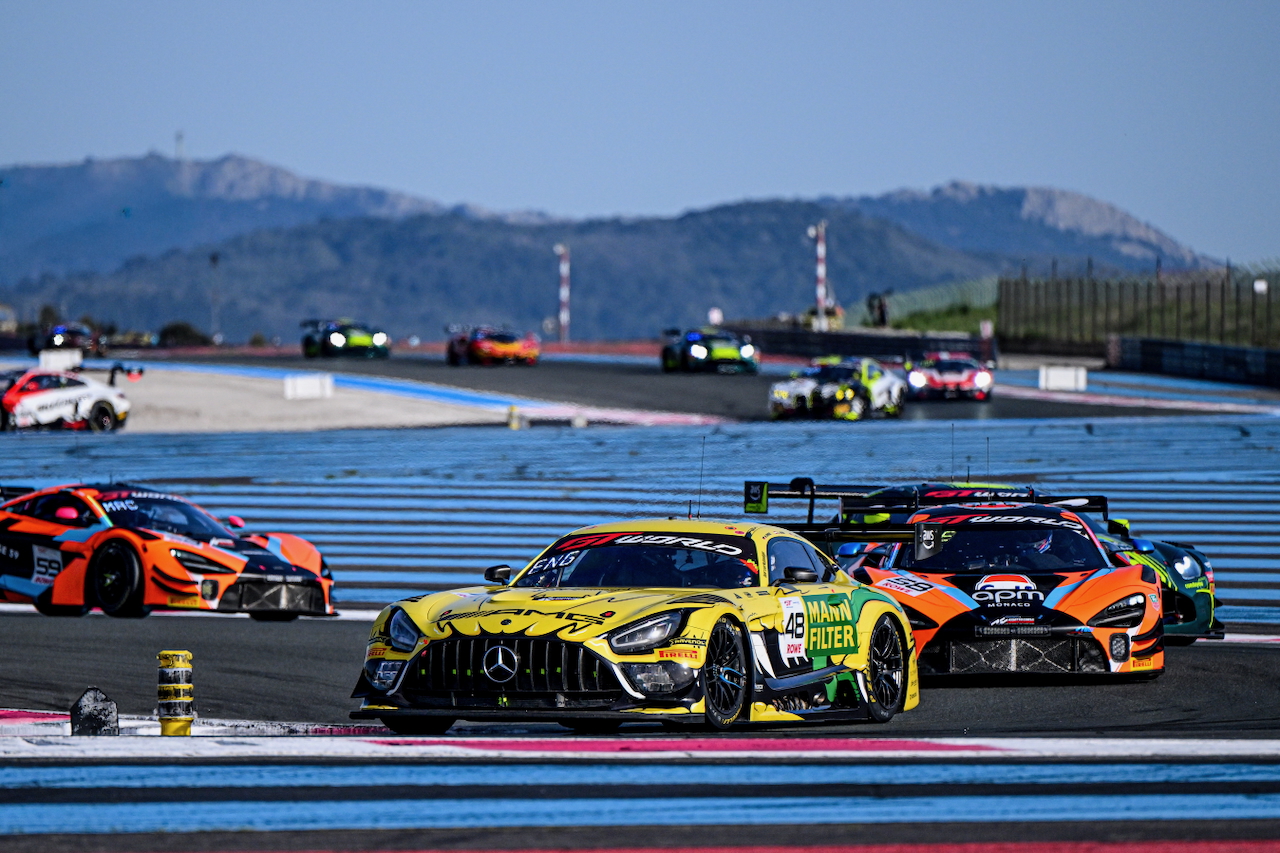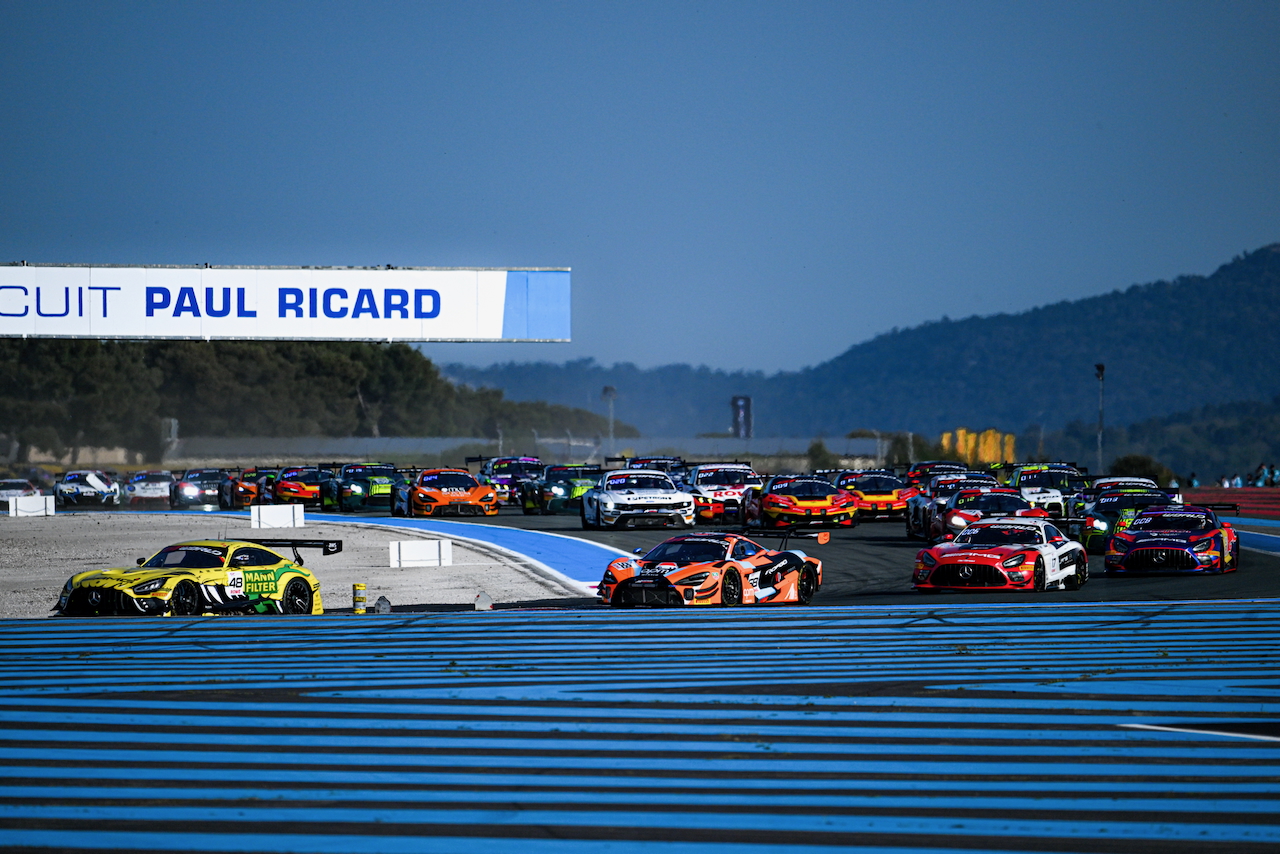 Gounon ha provato a sorprendere Martin sul rettilineo del Mistral approfittando del traffico, rischiando di perdere il controllo della propria vettura sui cordoli del Paul Ricard, ma nonostante tutto la Mercedes #3 è riuscita a sopravanzare la vettura di GetSpeed, subendo poi entrambe il ritorno della Porsche #80 del Lionspeed di Thomas Preining, autore di una bella rimonta che valeva la seconda posizione grazie anche alle azioni precedenti del teammate Bastian Buus sulla Ferrari #71 Selected Car Racing di Frederik Schandorff (Gold) e la BMW #32 WRT di Kelvin van der Linde.