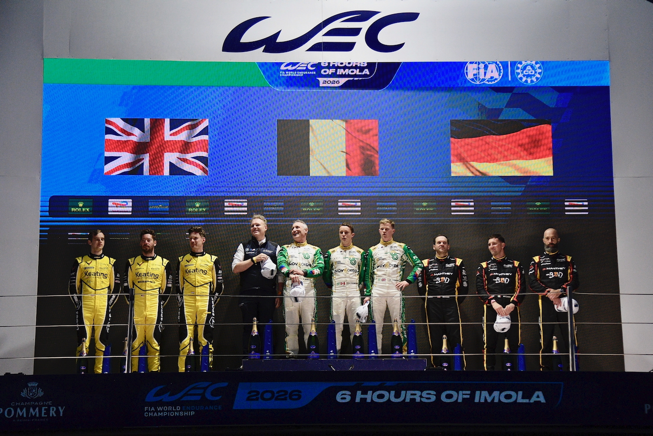 Alle spalle della M4 GT3 #69 dalla particolare livrea celebrativa, la Corvette orfana di Ben Keating di Nick Catsburg, Jonny Edgar e Blake McDonald. La rimonta dei campioni del mondo in carica Richard Lietz e Ricardo Pera dopo una penalità iniziale ed un testacoda da parte di Yasser Shahin vale il gradino basso del podio alla Porsche The Bend Manthey #92.